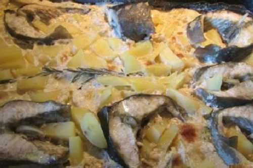Приготування: Натрій випотрошену стерлядь олією з лимонним соком, цедрою, часником і спеціями, і залиш маринуватися на 15 хвилин. Відварити картоплю до напівготовності і крупно наріж її разом з грибами. Виклади все у форму для запікання та змасти сметаною з рубаною зеленню та чебрецем. Запікайте страву в духовці близько 40 хвилин при 180 градусах.