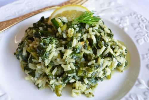 Тобі знадобиться: 250 г рису, 3 зубчики часнику, 300 г шпинату, спеції.