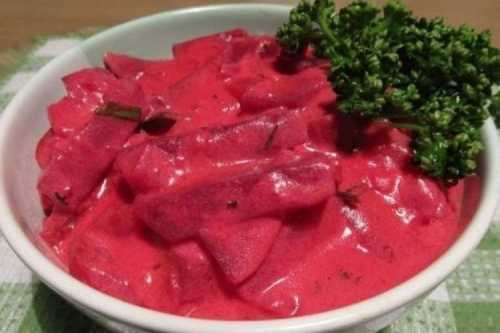 Тобі знадобиться: 500 г буряків, 180 г цибулі, 150 г сметани, 1 зубчик часнику, олія, спеції.