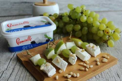 Тобі знадобиться: 1-2 груші, 100 г винограду, 150 г фети чи іншого сиру до смаку.