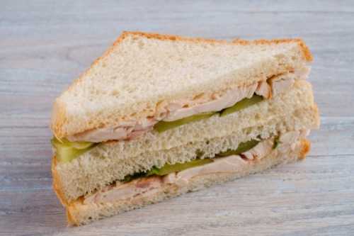 Приготування: Змасти половину скибочок хліба сирним сиром. Відварити або запікати курку, наріж слайсами і виклади зверху. Наріж гриби платівками, обсмаж і виклади на курку. Посип все рубаною зеленню і накрий хлібом.