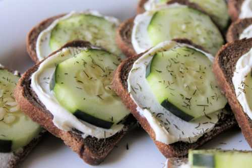 18. Бутерброди з сирним сиром, червоною ікрою та огірками