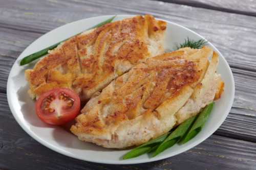 Тобі знадобиться: 500 г курячої грудки, 2 яйця, 1 ст.л. сметани, 3 ст. борошна, 3 ст. олії, мелений чорний перець і сіль за смаком.