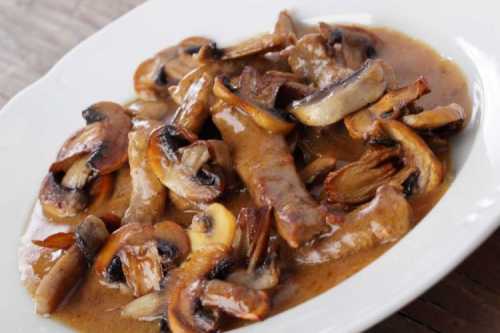 Тобі знадобиться: 450 г свинини, 300 г грибів, 3 помідори, 1 цибулина, 1 зубчик часнику, спеції, 2 ст.л. паприки, зелень, 2 ст. томатної пасти, 120 мл води або бульйону.