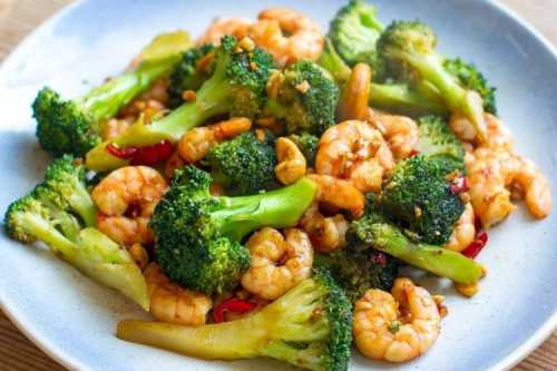 Приготування: Очисти та замаринуй креветок у соєвому соусі зі спеціями на півгодини. Довільно наріж овочі шматочками середнього розміру. Спочатку обсмаж креветок близько 5 хвилин, помішуючи, і відклади їх убік. А в тій же сковороді обсмаж овочі 5-10 хвилин до м'якості. Додай креветки та часник, і готуй ще 2-3 хвилини. Зніми страву з вогню та подавай до столу.
