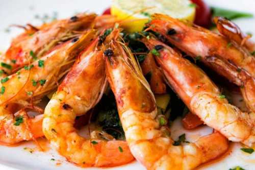 Приготування: Змішай лимонний сік, цедру, часник, оливкову олію та трави зі спеціями. Замаринуй креветок у панцирах без голови на 2-3 години, а потім виклади їх на пергамент і запікай у духовці при 200 градусах 8-12 хвилин, залежно від розміру.