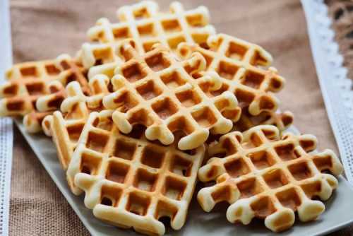 Приготування: Зби яйця з цукром і додай розтоплене вершкове масло. Влий молоко, а потім всип борошно, розпушувач і сіль. Випікай вафлі у вафельниці за інструкцією близько 5-7 хвилин.