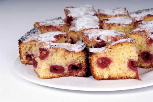 Тобі знадобиться: 4 яйця, 300 г борошна, 2 ст. смальцю, 1 ч.л. розпушувача, 1 крапля ванільної есенції, 200 г цукру, 150 г вишні.