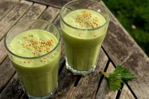 Приготування: Обдай листя кропиви окропом та обсуши. Очисти та наріж фрукти. Відправте всі інгредієнти в блендер і подрібніть смузі. За бажанням можеш додати мед.