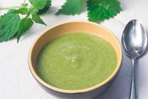 Промий кропиву, обдай її окропом, зріж стебла і подрібни листя. Закип'ятіть воду, додай нарізану картоплю і вари близько 15 хвилин. Додай кропиву та провари ще 2-3 хвилини. Подрібни суп блендером, додай спеції та тертий плавлений сир, і ще трохи провари суп до розчинення сиру.