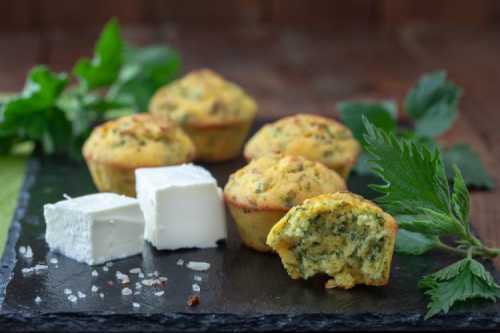Кропиву опусти в окріп на пару хвилин і потім подрібни блендером. Розтопи вершкове масло, патоку та мед, перемішай і додай борошно з розпушувачем та сіллю. Додай збиті яйця та кропиву. Знову все перемішай, розклади тісто по формах і випікай кекси близько 30 хвилин у духовці при 180 градусах.