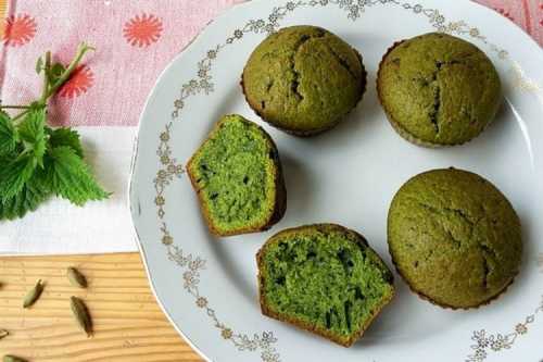 Промий кропиву і подрібни її листя в блендері з цукром до однорідності. Зби яйця з олією, додай просіяні сухі інгредієнти, всип кропиву і знову все перемішай. Виклади тісто у формочки і випікай мафіни 30 хвилин у духовці при 180 градусах.