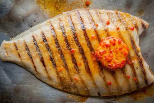 Приготування: Очисти, промий і натрій камбалу спеціями і сіллю за смаком. Залиш рибу на 1 годину, а можна – на ніч. Змасти решітку гриля олією, поклади камбалу і смажу по 3-5 хвилин з кожного боку.