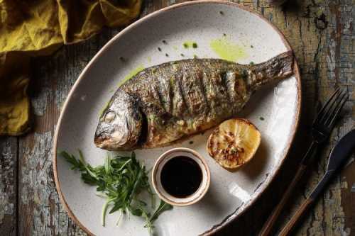 Приготування: Очисти і випотроши дорадо, збризкати її лимонним соком і натрій спеціями з усіх боків. Залиш на 1-2 години. Змасти решітку гриля олією та смаж рибу до золотистості – буквально пару хвилин.