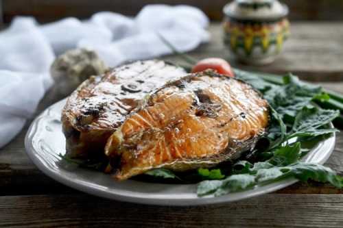 Приготування: Змішай масло, всі спеції та дрібно рубану цибулю. Натрій стейки кети цією сумішшю і залиш у холодильнику на пару годин або на ніч. Розігрій гриль та обсмаж рибу на ньому з двох сторін до готовності.