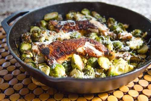 Тобі знадобиться: 1 кг курячих ніжок, 300 г брюссельської капусти, 1 ст. оливкової олії, 2 зубчики часнику, 1 лимон, 4 ст.л. бульйону, 1/2 склянки тертого пармезану, спеції.