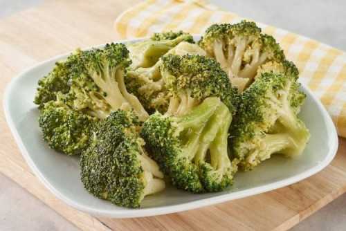 Розбери брокколі на суцвіття, просуши і приправ. Виклади все на верхній рівень пароварки та готуй близько 8-10 хвилин.