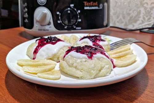 Приготування: Розтопи вершкове масло і зби всі інгредієнти блендером до однорідності. Сформуй сирники вологими руками та запануй їх у борошні. Застелить ємність пароварки пергаментом для запікання, виклади сирники і готуй 20 хвилин.