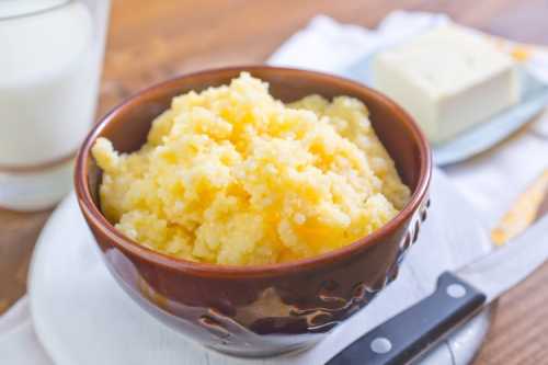 Тобі знадобиться: 50 г кукурудзяної крупи, 100 мл молока, 100 мл води, 5 г вершкового масла, цукор, сіль, ванілін.