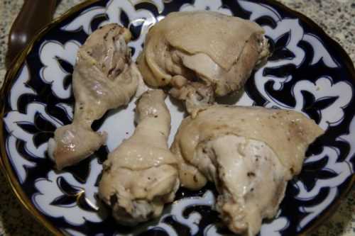 Приготування: Замаринуй курячі ніжки в спеціях, олії та часнику приблизно на півгодини. Виклади їх у ємність пароварки прямо із залишками маринаду. Готуй страву 50 хвилин.