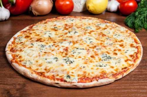 Приготування: Змасти основу для піци олією та посип орегано. Засип її тертою моцарелою, потім розклади скибочки твердого сиру та сиру з пліснявою. Засип все пармезаном і відправ піцу в духовку на 15 хвилин при 200-220 градусах.