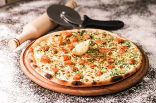 Приготування: Змішай сухі інгредієнти для тіста, влий теплу воду та масло, вимішай і залиши тісто в теплі на 1 годину. Розкатай тісто і змасти його томатним соусом. Посип частиною тертої моцарели і рубаною зеленою цибулею із зеленню. Виклади скибочки лосося і засип всім сиром, що залишився. Відправте піцу в духовку на 15-20 хвилин при 180 градусах.