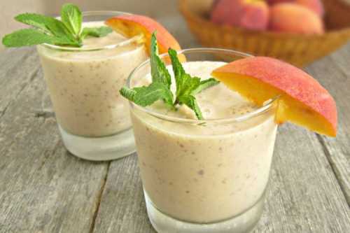 Тобі знадобиться: 200 г персиків, 200 мл молока, 1 ч.л. насіння льону, 2 ст. рідкий мед.