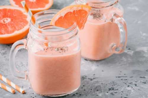 Приготування: Грейпфрут очисти від шкірки, плівок і розбери шматочки. Помісти в чашу блендера грейпфрут, додай цукор, охолоджене молоко фісташки і гарненько збий смузі.