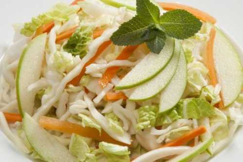 Тобі знадобиться: 400 г капусти, 100 г яблука, 150 г моркви, лимонний сік, оливкова олія, спеції.