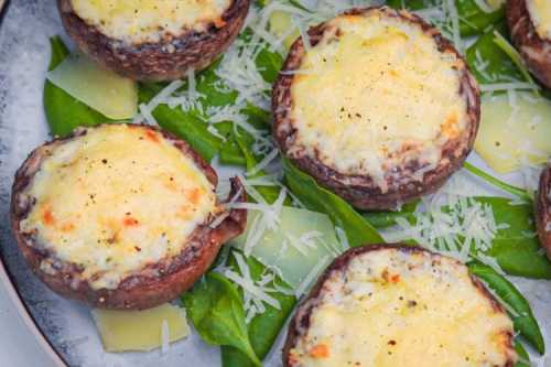 Приготування: Подрібни шпинат і змішай його з рикоттою, часником, сіллю та спеціями. Наповни капелюшки печериць цією начинкою і посип тертим пармезаном. Після чого відправ гриби на 20-30 хвилин в духовку при 180 градусах.