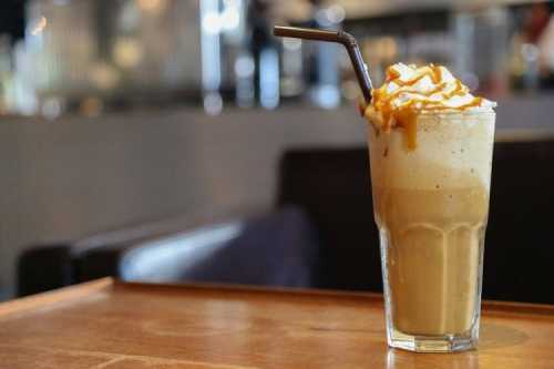 Приготування: Звари кави будь-яким зручним способом і дай йому трохи охолонути. Збий у блендері лід з молоком та вершками. Додай карамельний сироп і каву, і знову збий. Перелий фраппе в келих.