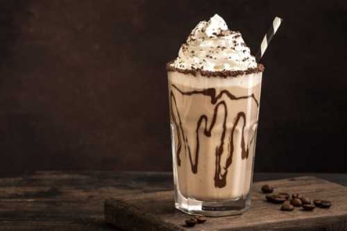 Приготування: Зваріть еспресо будь-яким доступним способом і дай охолонути. Відправ його в блендер з молоком, льодом і корицею до смаку, і збий все разом. Розтопи шоколад, розлий його по келихах і зверху залий фраппе.