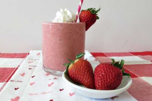 Приготування: Заздалегідь трохи заморози полуницю. Збий її в блендері до однорідності з рештою інгредієнтів. За бажанням – додай краплю барвника.