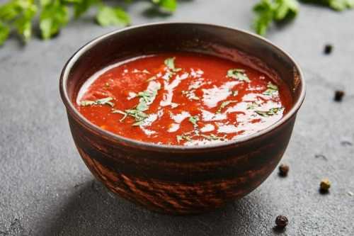 Тобі знадобиться: 80 мл томатної пасти, 30 мл води, 60 г цибулі, 10 г кінзи, спеції.