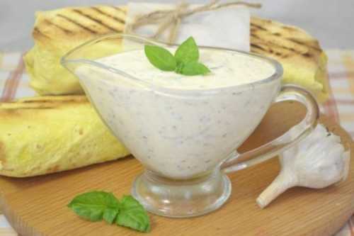 Тобі знадобиться: 300 мл сметани або густого йогурту, 150 г твердого сиру, 4 зубчики часнику, 1/2 пучка кропу, спеції.