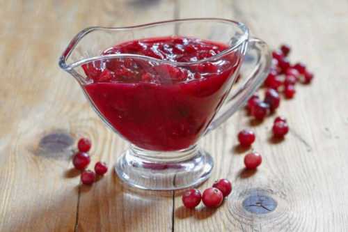 Приготування: Журавлину залий водою і протушкуй 20 хвилин на слабкому вогні. Втрути тертий імбир, цедру та сік лимонів. Протушкуй ще 7-10 хвилин, додай мед і перемішай соус.
