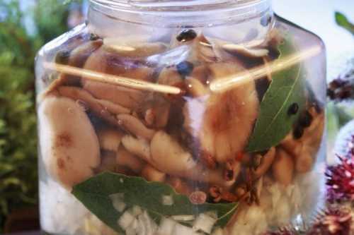 Приготування: Відвари сироїжки 10 хвилин у киплячій воді з сіллю, промою і відкинь на друшляк. Але відвар не виливай! Виклади в стерилізовану банку третину добавок та спецій, шар сироїжок, знову шар прянощів, знову шар сироїжок та знову прянощі. Залий все киплячим грибним відваром і залиши заготовку в прохолодному місці на 3 дні. Закрийте банку кришкою і приберіть її в темне холодне місце для зберігання.