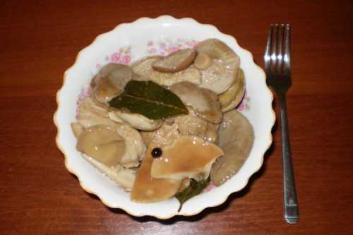 Додай у 500 мл води всі спеції та крупно нарізану цибулину. Доведи до кипіння, проварити 10 хвилин і опусти сироїжки в цей маринад. Провари ще 20 хвилин, виклади гриби в стерилізовану банку, залий маринадом, влий ложку олії і закатай на зиму.