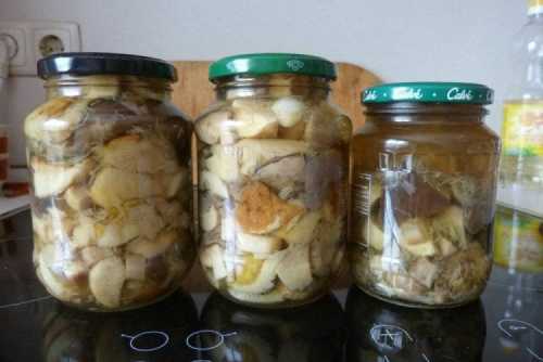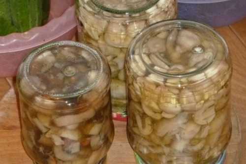 Звари маринад з води, солі, цукру та оцту. Залий сироїжки отриманим маринадом, накрий кришкою та залиш на 3-4 дні в холодильнику. Після чого маринад злий і доведи до кипіння. Виклади сироїжки в стерилізовані банки, влий туди киплячий маринад і по ложці гарячої олії, і закатай заготовки на зиму.
