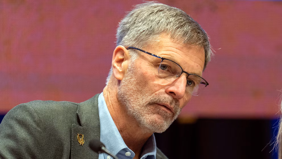 Губернатор штату Вайомінг, Марк Гордон, спостерігає за початком зимової зустрічі Асоціації західних губернаторів, яка відбулася 6 листопада 2023 року в містечку Тетон-Вілледж, штат Вайомінг. Бредлі Дж. Бонер/Jackson Hole News & Guide через AP, FILE
